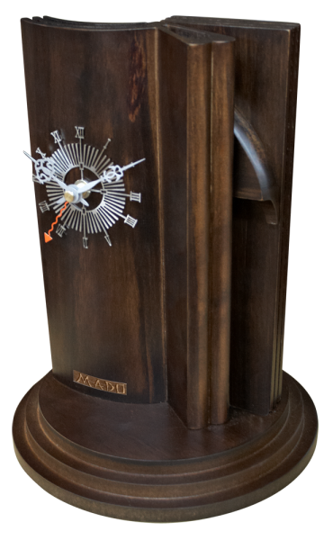 The clock symbolizes wisdom and aiming to perfection. I write, I look, I erase