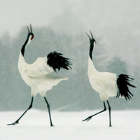 Japanese crane is also famous for its love to dance. Many kinds of cranes were also seen dancing, but only the kind of Japanese crane does it so frequently and intoxicated. For this bird a dance does not connected with the conjugal period, but it seems that it shows his joy or perhaps, it is just the way the birds communicate in the flock.