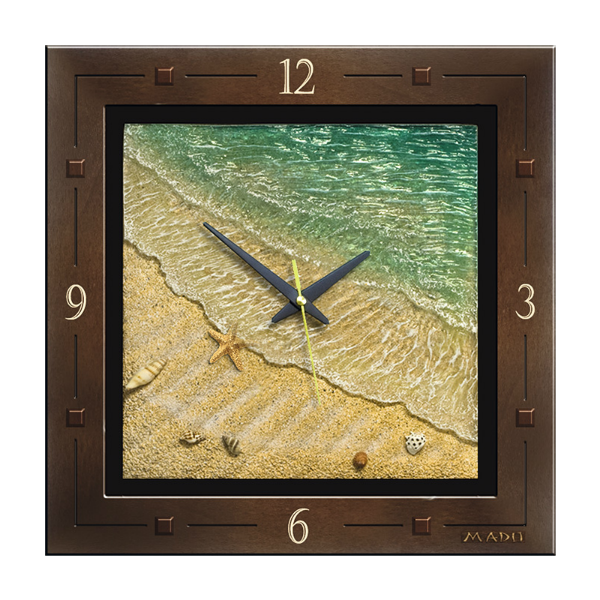 The clock is created in "Bonseki" style - an ancient Japanese art of creating miniature landscapes on black lacquer trays using white sand, pebbles, and small rocks.